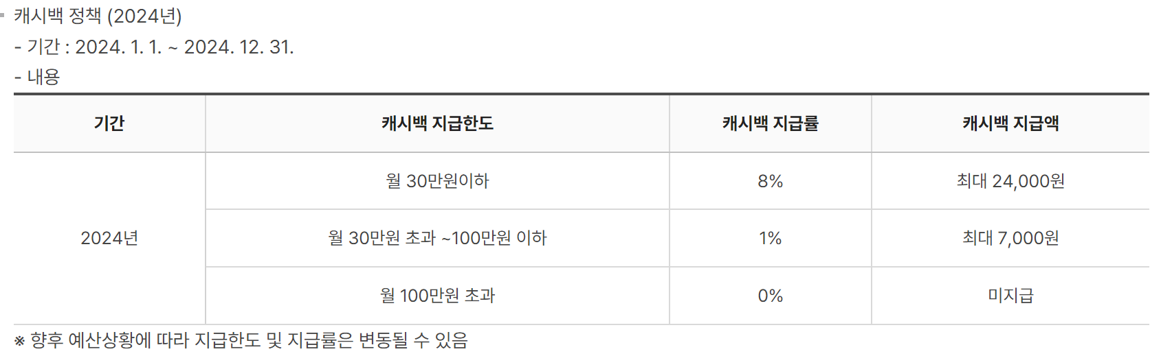 2024 천안사랑카드 캐시백 혜택은 다음과 같습니다.