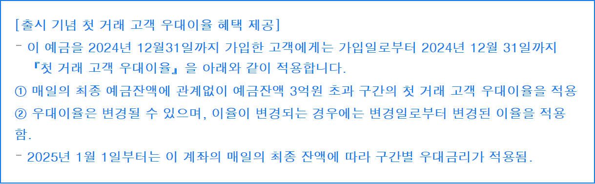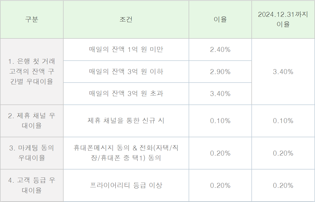 1. 첫 거래 고객 잔액별 우대이율: 3.4%