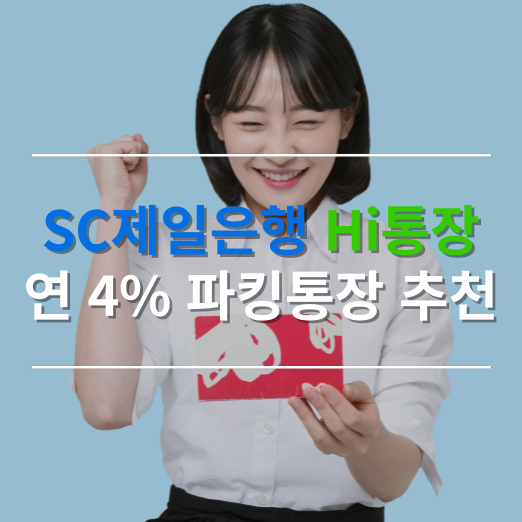 SC제일은행 Hi통장 연 4% 고금리 파킹통장 추천 우대금리 이자계산 금액경제정책 2024. 7. 26. 18:49