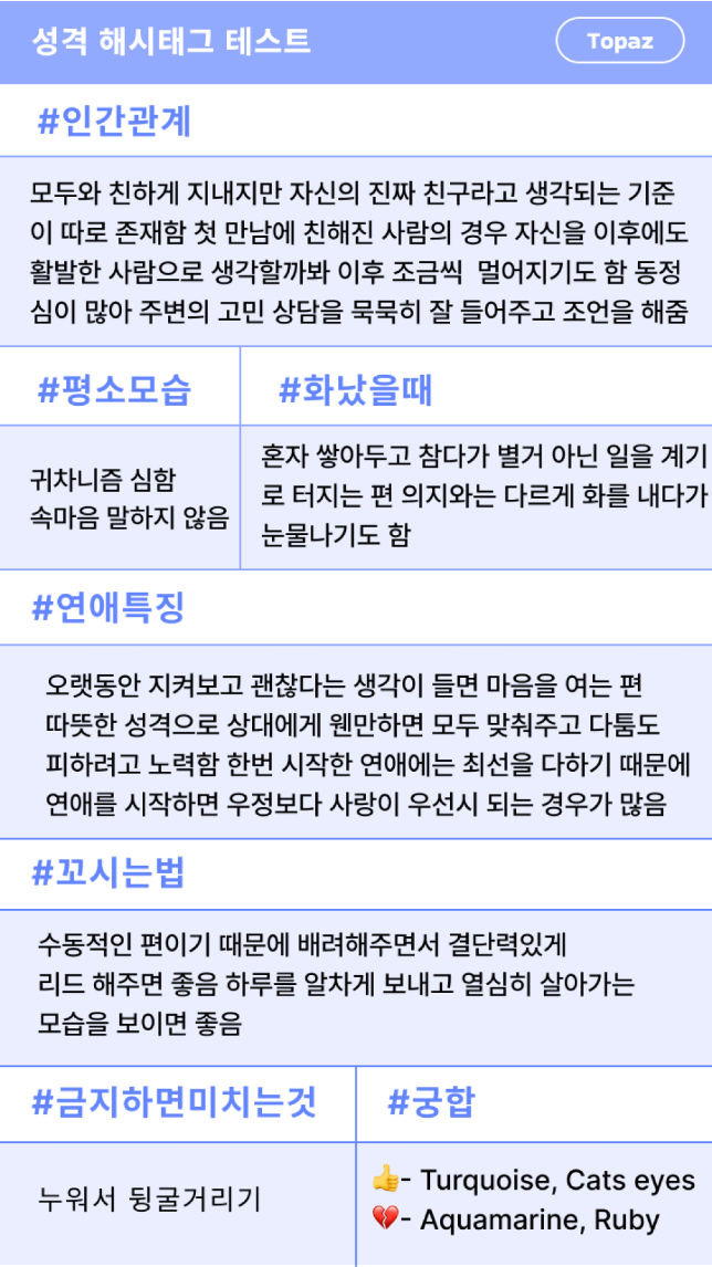 성격 해시태그 테스트 결과 토파즈 - ISFP