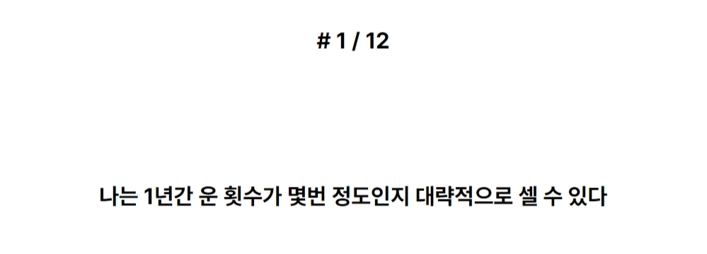 1. 나는 1년간 운 횟수가 몇 번 정도인지 대략적으로 셀 수 있다.