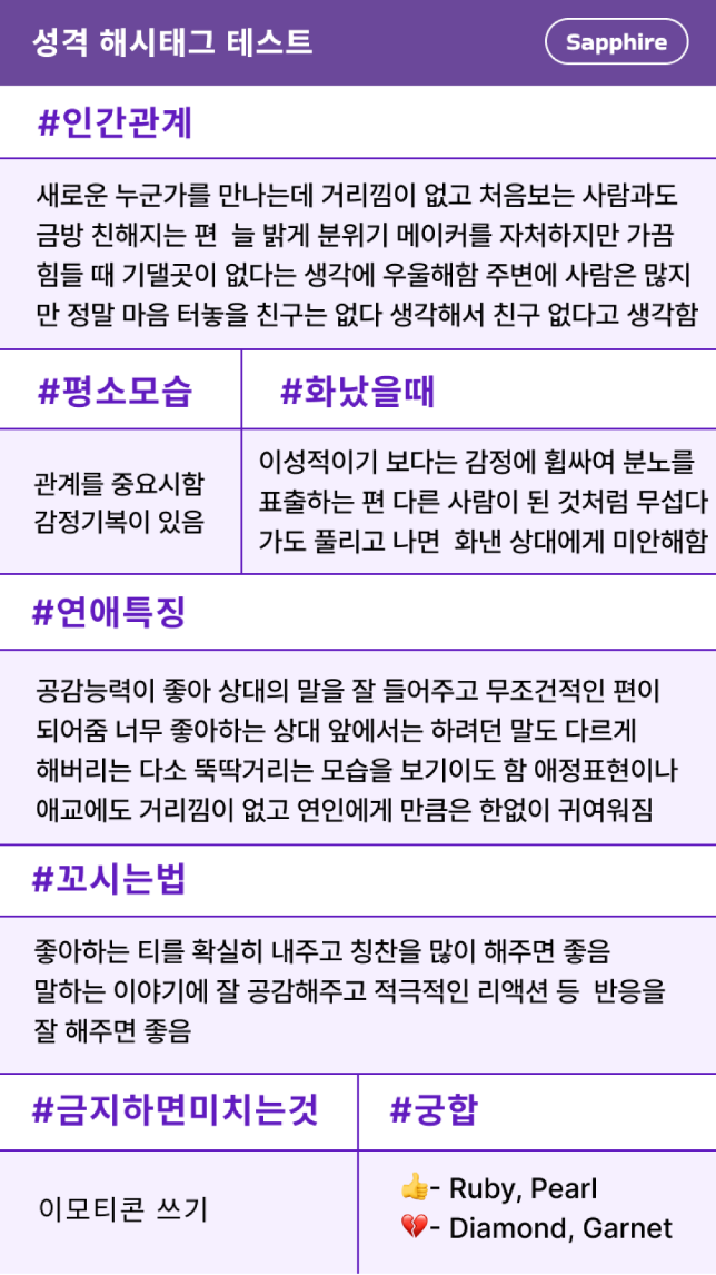 성격 해시태그 테스트 결과 사파이어 - ENFP
