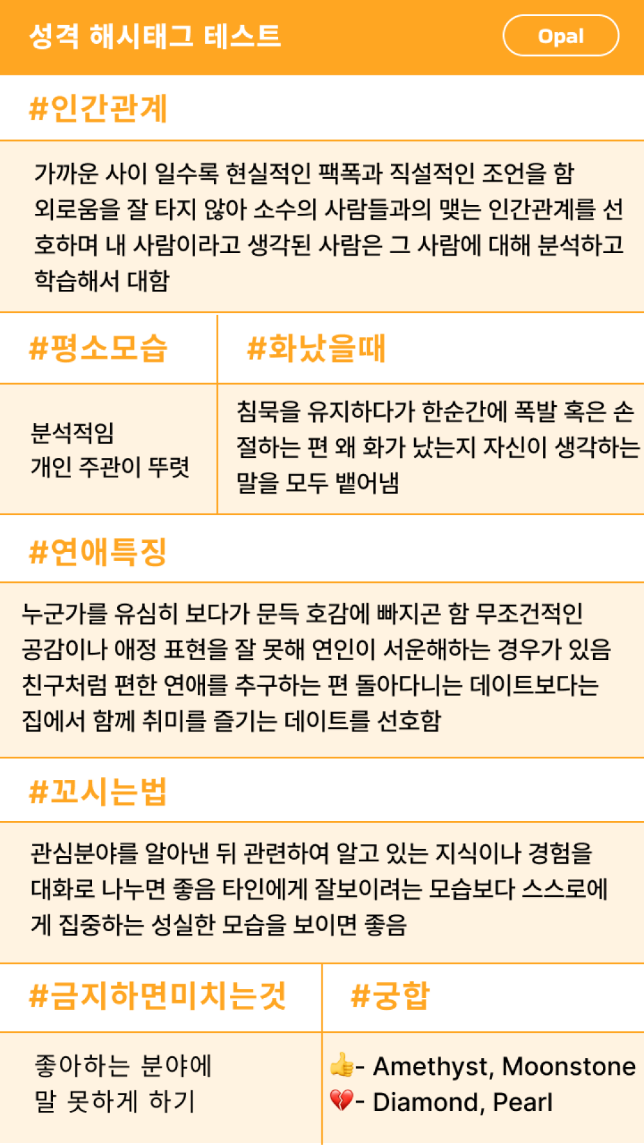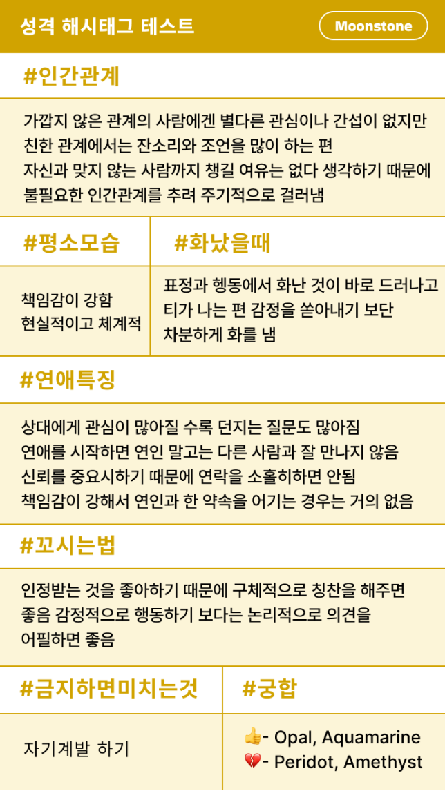 성격 해시태그 테스트 결과 문스톤 - ESTJ
