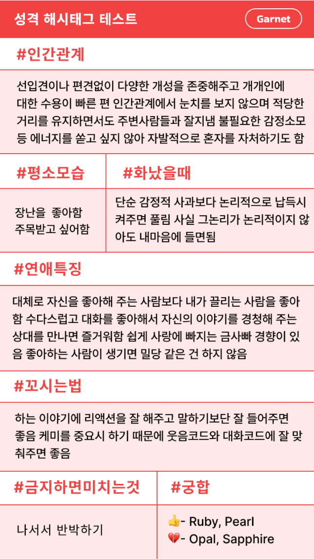 성격 해시태그 테스트 결과 루비 - INFJ 모든 결과 유형도 아래에서 확인가능합니다.