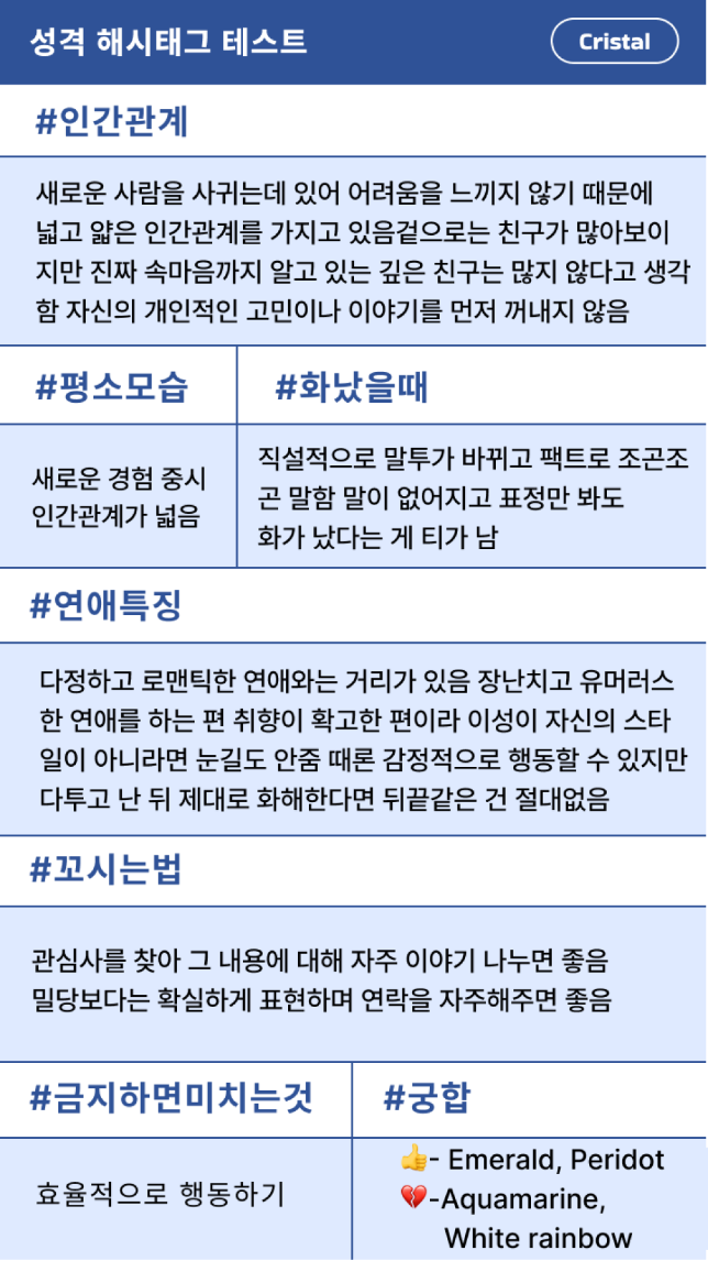 성격 해시태그 테스트 결과 크리스탈 - ESTP