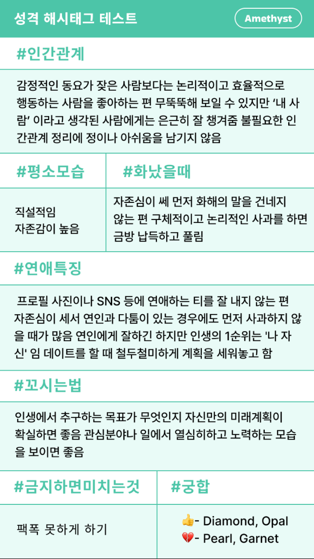성격 해시태그 테스트 결과 자수정 - ENTJ