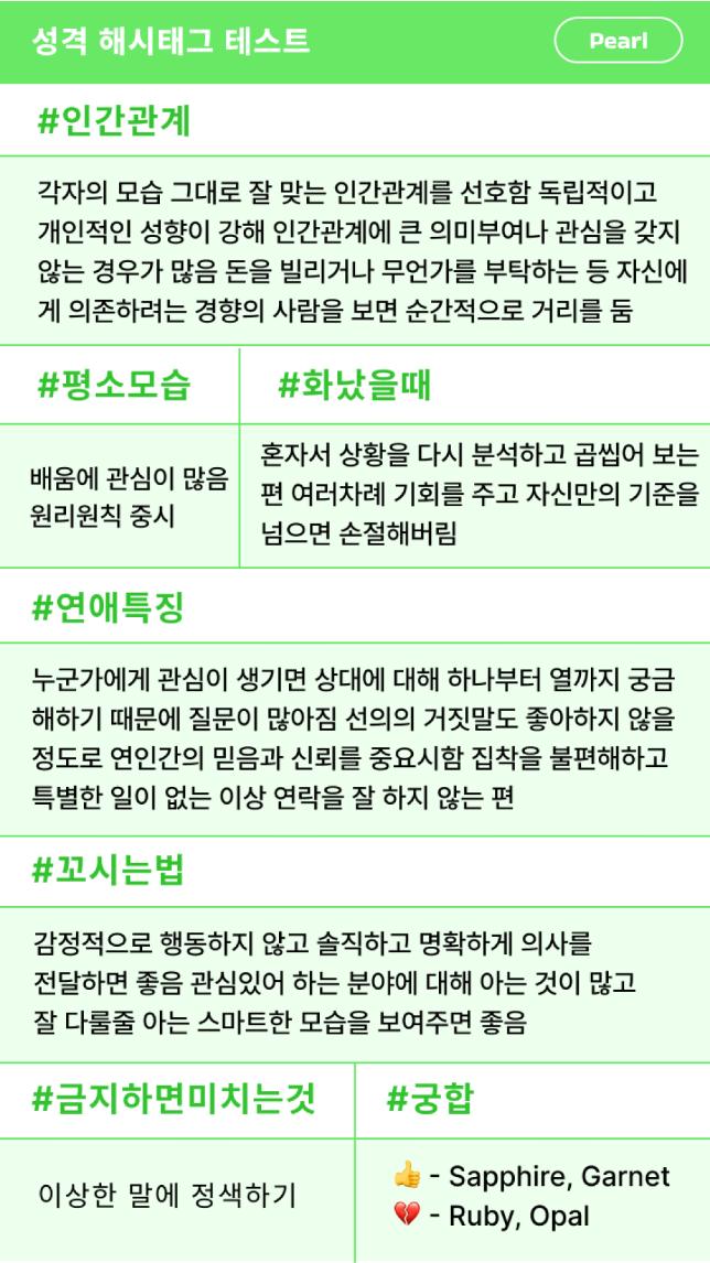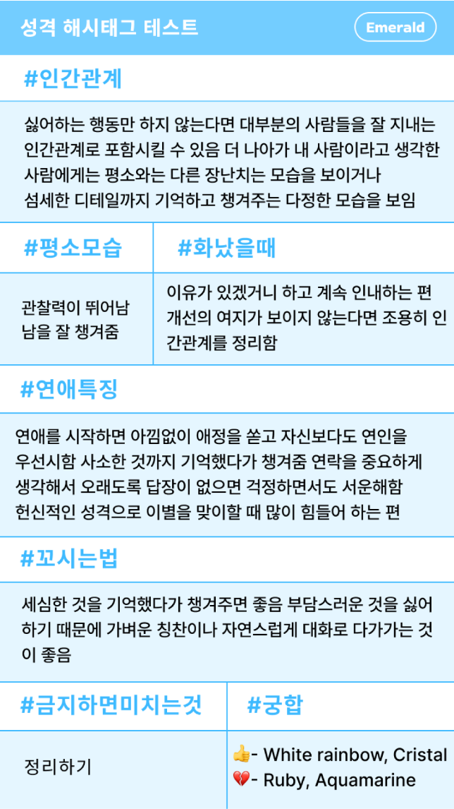 성격 해시태그 테스트 결과 에메랄드 - ISFJ
