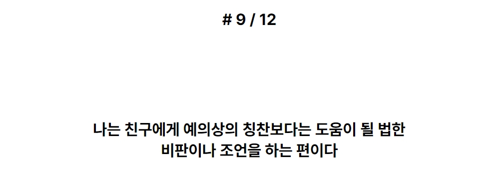 9. 나는 친구에게 예의상의 칭찬보다는 도움이 될 법한 비판이나 조언을 하는 편이다.