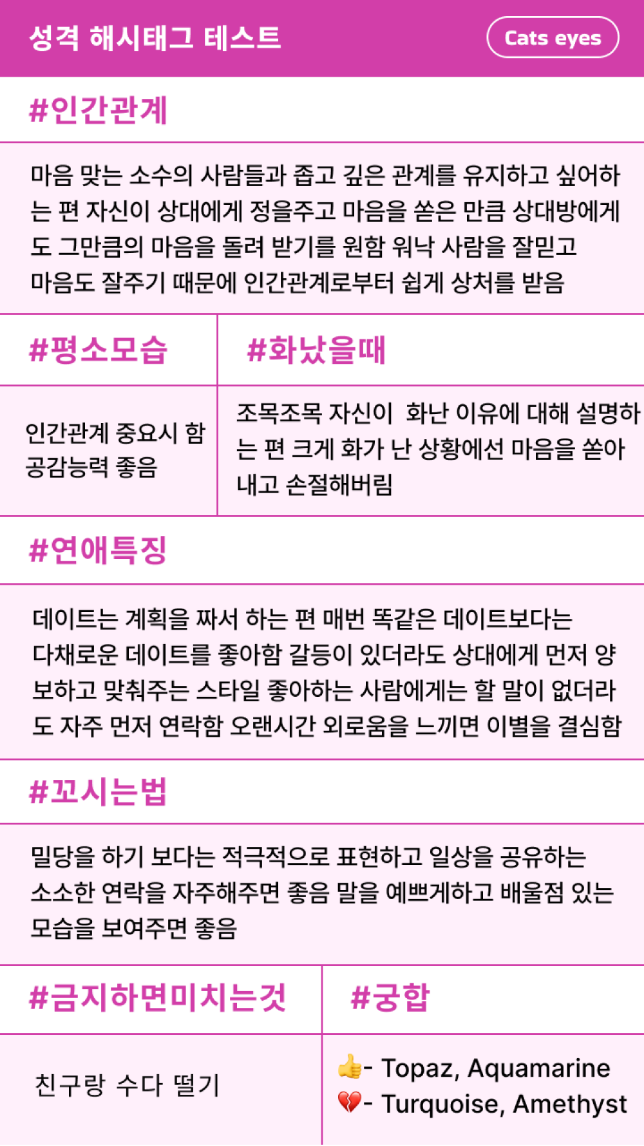 성격 해시태그 테스트 결과 캣츠 아이즈 - ESFJ