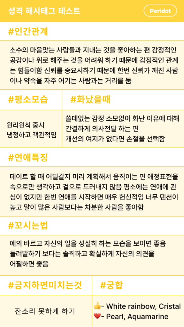 성격 해시태그 테스트 결과 페리도트 - ISTJ