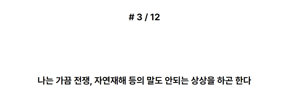 3. 나는 가끔 전쟁, 자연재해 등의 말도 안 되는 상상을 하곤 한다.
