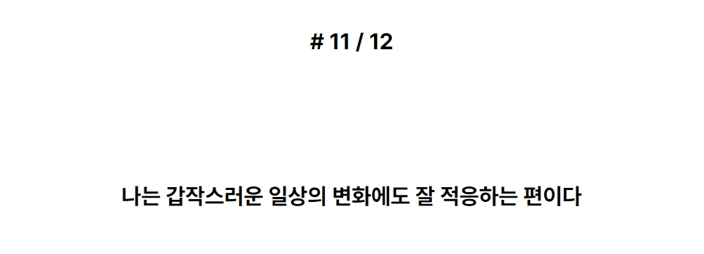 11. 나는 갑작스러운 일상의 변화에도 잘 적응하는 편이다.