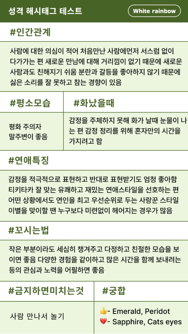 성격 해시태그 테스트 결과 화이트레인보우 - ESFP