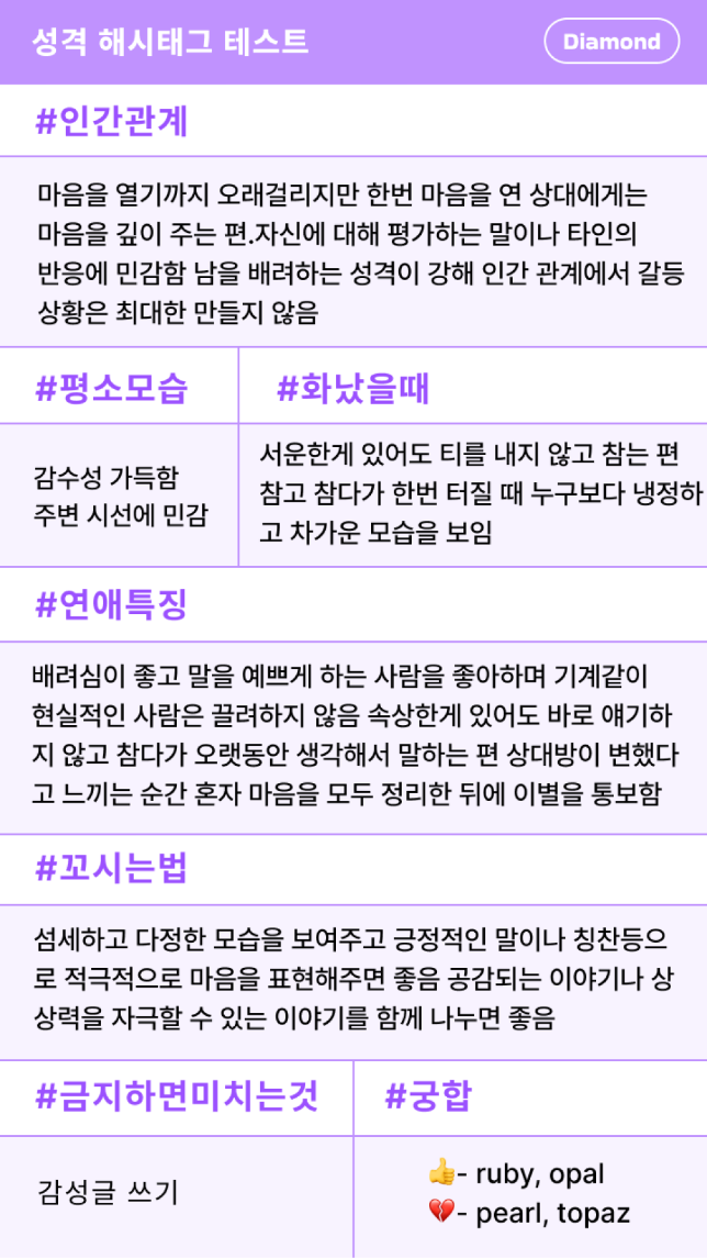 성격 해시태그 테스트 결과 다이아몬드 - INFP