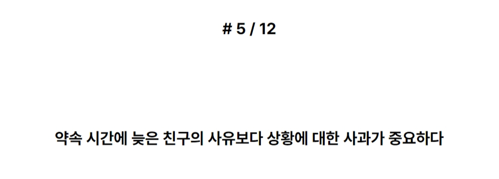 5. 약속시간에 늦은 친구의 사유보다 상황에 대한 사과가 중요하다. YES