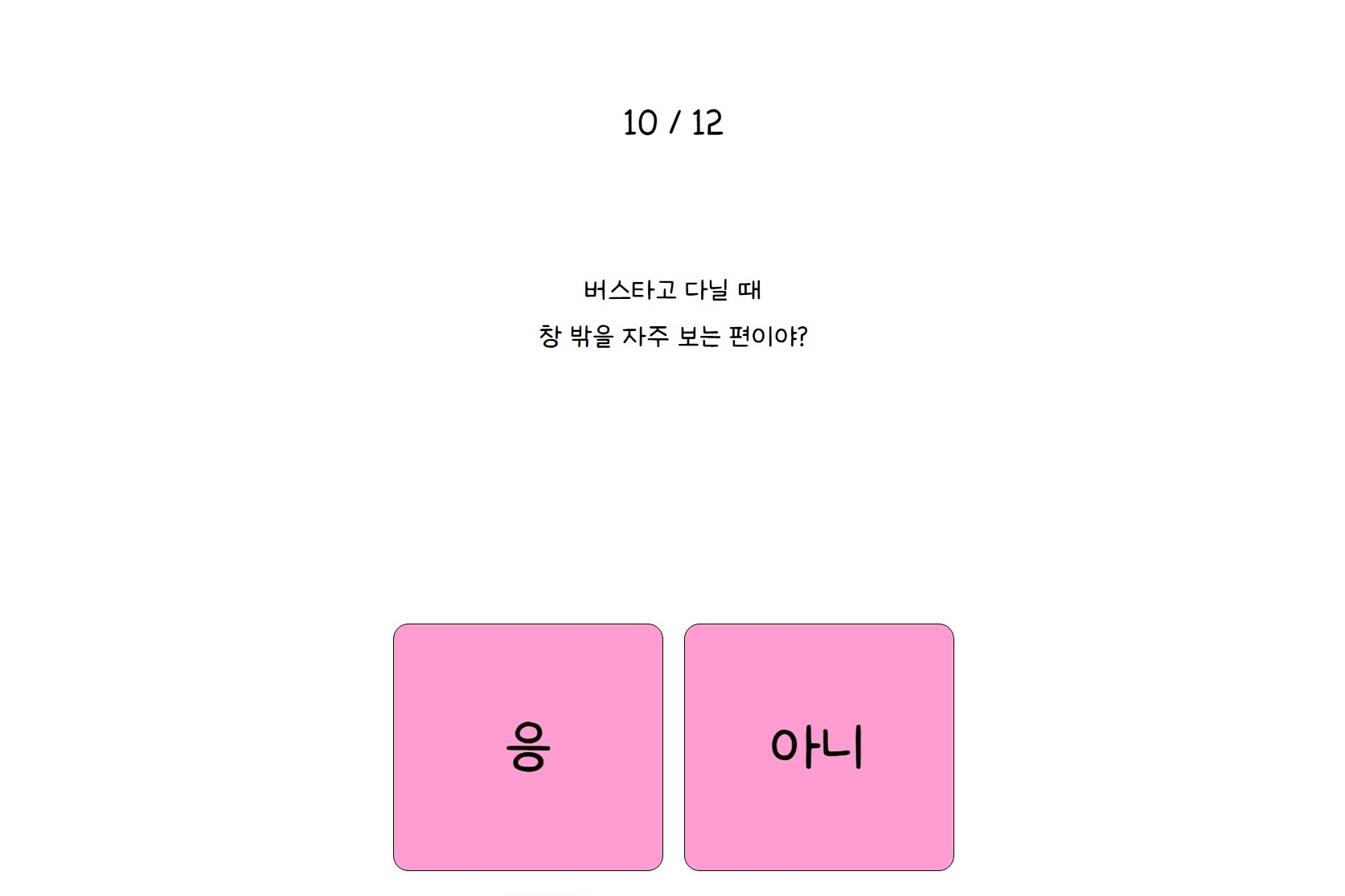 10. 버스타고 다닐 때 창밖을 자주 보는 편이야?
